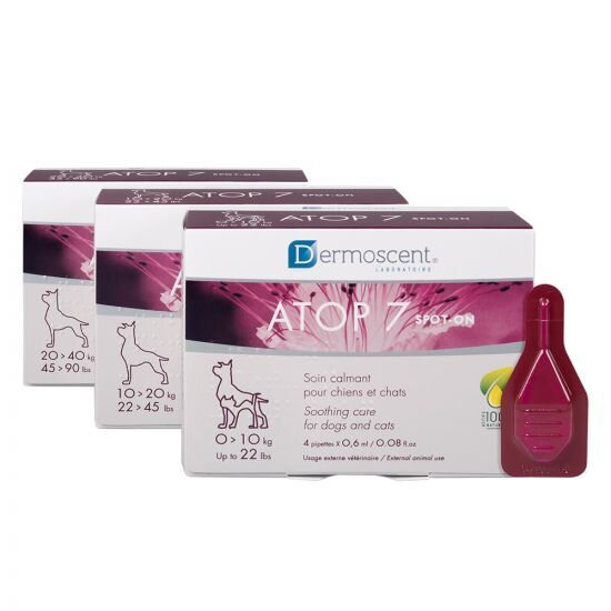 16 атопични кучета бяха третирани с ATOP 7® spot-on и ATOP 7® шампоан веднъж седмично в продължение на един месец в допълнение към медикаментозното лечение, докато 12 атопични кучета продължиха лечението си с лекарства без допълнителни грижи.