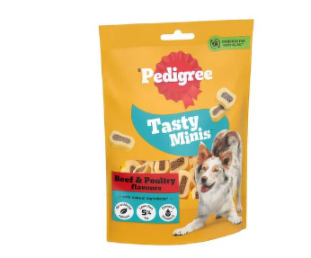 Pedigree Tasty Minis Малки хапчици с говеждо и птиче са примамливи и вкусни лакомства за кучета – чудесни както за големи, така и за малки кучета, те са идеалният начин да възнаградите кучето си, когато пожелаете. Вкусните лакомства за кучета съдържат омега-3 ненаситени мастни киселини, витамини и минерали и не съдържат изкуствени оцветители или аромати, така че и вие наистина можете да се чувствате добре с тях!